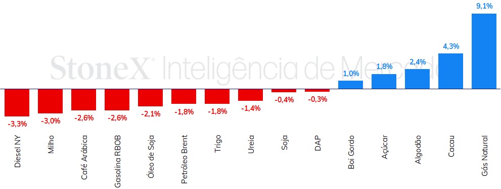 - Petróleo: A movimentação dos preços do petróleo afeta os custos de frete e insumos agrícolas.