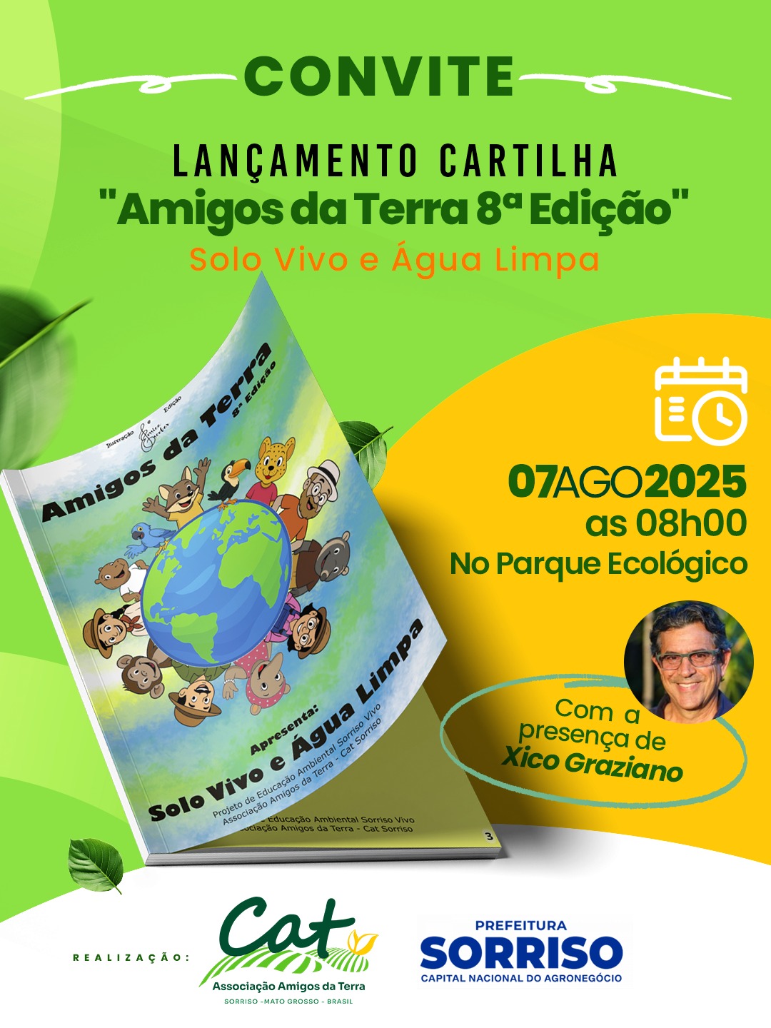 No dia 7 de agosto, às 8h, o Parque Ecológico de Sorriso será palco do lançamento da 8ª edição da Cartilha “Amigos da Terra”, que neste ano traz o tema “Solo Vivo e Água Limpa”.