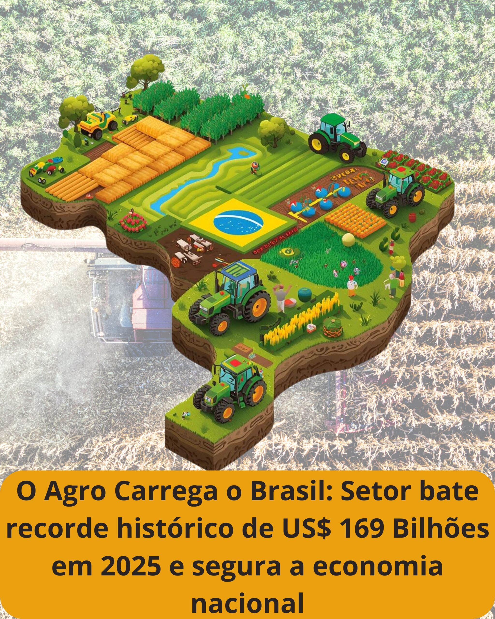 O Grande Número O agronegócio brasileiro fechou o ano de 2025 com o maior faturamento externo da história: foram US$ 169,2 bilhões em exportações. Para se ter uma ideia do tamanho disso: esse valor representa quase metade (48,5%) de tudo o que o Brasil vendeu para o mundo. Se não fosse o agro, a balança comercial do país estaria em uma situação complicadíssima.