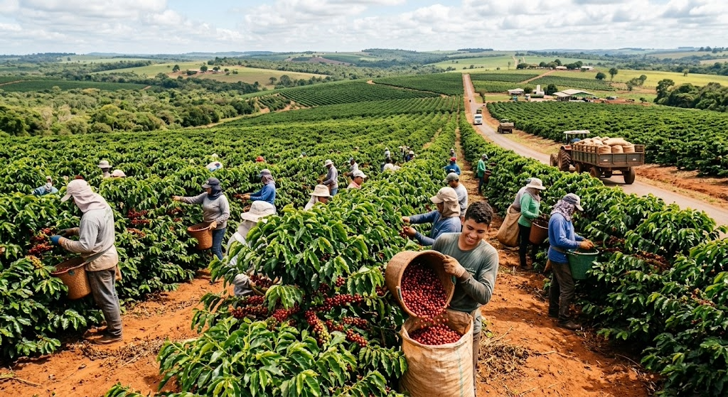 O mercado global de café vive um período de preços sustentados. No Brasil, o indicador do café conilon/robusta opera próximo a R$ 966,50 por saca (Média Estadual MT), refletindo a alta demanda da indústria de solúveis e o baixo nível dos estoques mundiais.