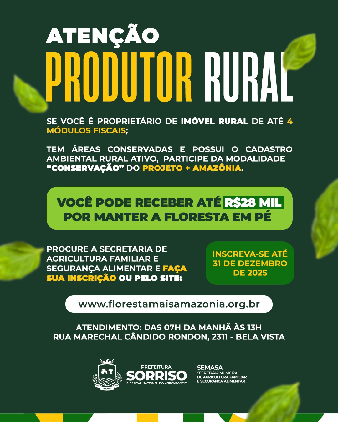 Ou presencialmente na Secretaria de Agricultura Familiar e Segurança Alimentar